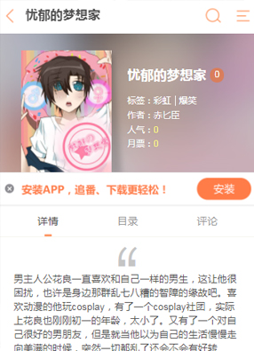 A-A+ 忧郁的梦想家 2025-08-22 01:39 韩国漫画 开始阅读 微信阅读 简介:漫画《忧郁的梦想家》讲述了男主人公花良一直喜欢和自己一样的男生,这让他很困扰,也许是身边那群乱七八糟的智障的缘故吧。喜欢动漫的他玩cosplay,有了一个cosplay社团,实际上花良也刚刚初一的年龄,太小了。又有了一个对自己很好的男朋友,但是就当他以为自己的生活慢慢走向美满的时候,突然一切都乱了还会不会有好转啊......
